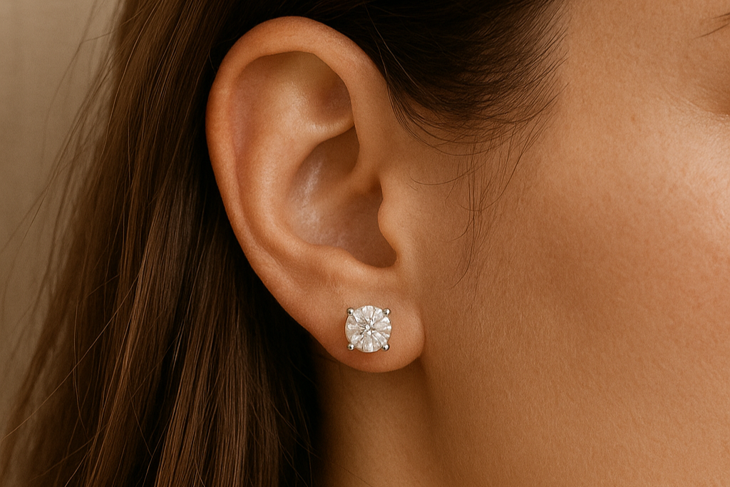 Moissanite is the second hardest stone (hardness 9.2) right behind diamond (hardness 10). Therefore, it's very durable, scratch-resistant, and will not lose its sparkle or get cloudy over time. You can wear them 24/7, even during a shower, and it will stay sparkling for a lifetime.